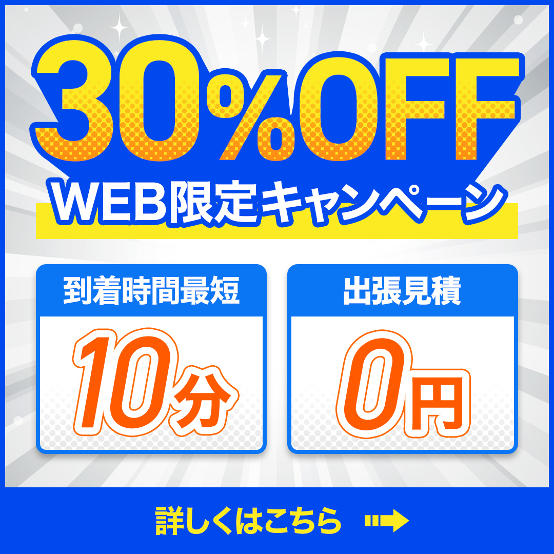 最短10分程度でお伺いできます。 ただ、移動距離などによってお時間は変わりますので、お電話を頂いたときにお客様宅への到着時間をお伝えさせて頂いてます。